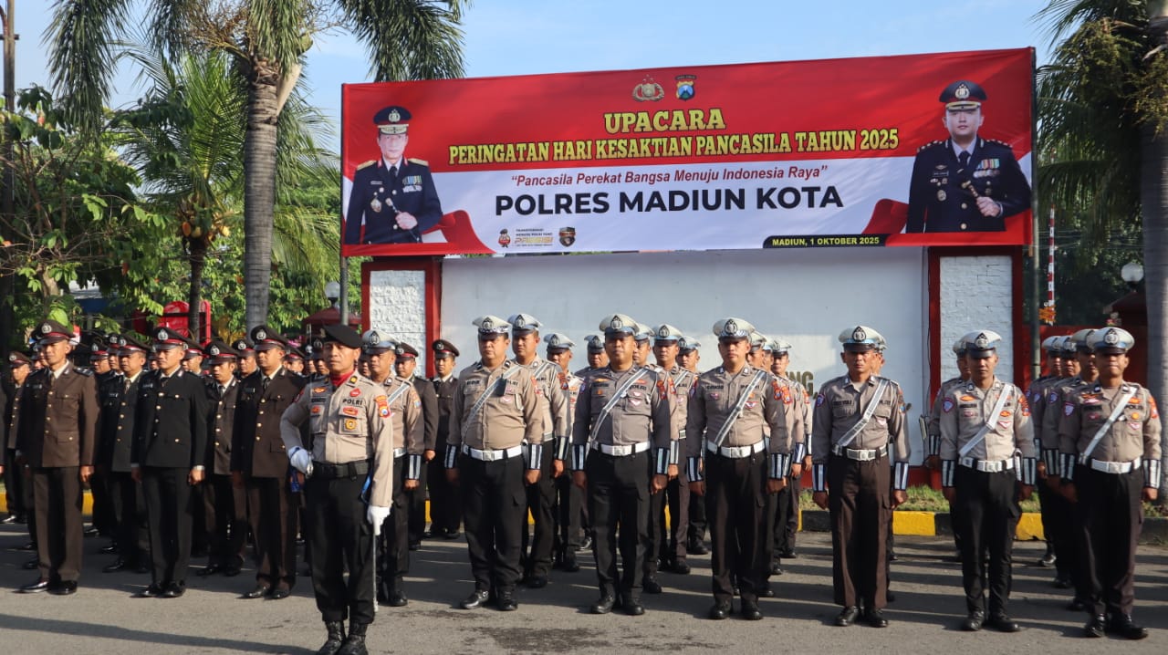 Upacara berlangsung dengan khidmat dan penuh rasa nasionalisme. Kapolres Madiun Kota menyampaikan bahwa momentum Hari Kesaktian Pancasila menjadi pengingat pentingnya menjaga persatuan, menegakkan nilai-nilai luhur Pancasila, serta menolak segala bentuk paham yang dapat mengancam keutuhan NKRI.